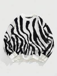 Street Life Jersey de cuello redondo con estampado de rayas de cebra para hombre, moda callejera, otoño e invierno