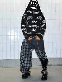 Street Life Suéter de punto con estampado gráfico, estilo callejero masculino, estilo grunge, otoño/invierno