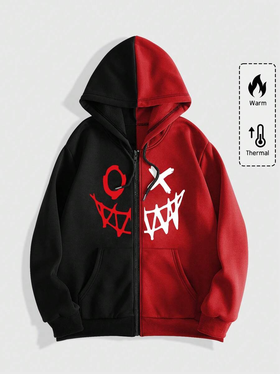 Street Life Sudadera con capucha casual de hombre con estampado de bloques de color, otoño/invierno