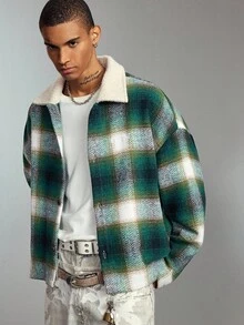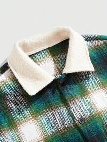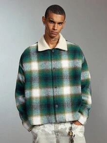 Street Life Abrigo largo casual de hombre con contraste de color en el cuello, hombros caídos y manga larga a cuadros, para otoño/invierno