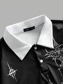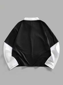 Camiseta casual de hombre con estampado de parches de color contrastante y eslogan, otoño