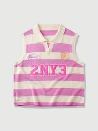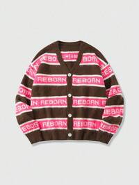Street Life Chaleco de punto con patrón de rayas y bloqueo de color con bordado de letras para hombre