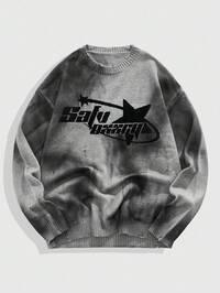 Grunge Punk Suéteres de punto casuales para hombres con estampado de letras y figuras gráficas para otoño/invierno