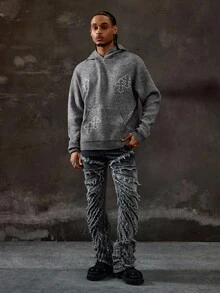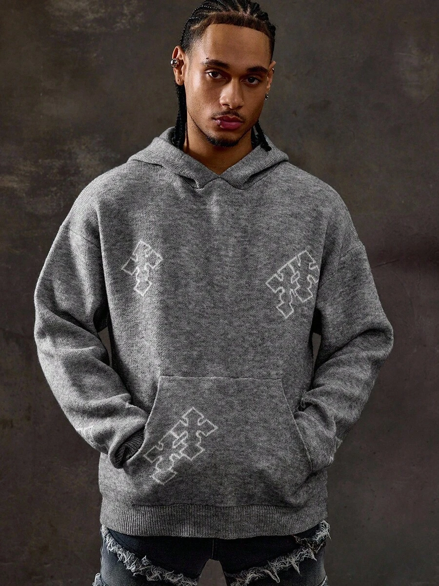 Goth Sudadera con capucha casual de hombre con bolsillo y estampado de cruz, otoño/invierno