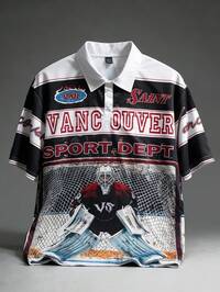 Prep Camiseta de cuello en V con gráfico de número y letra de jersey de satén, estilo de los años 2000
