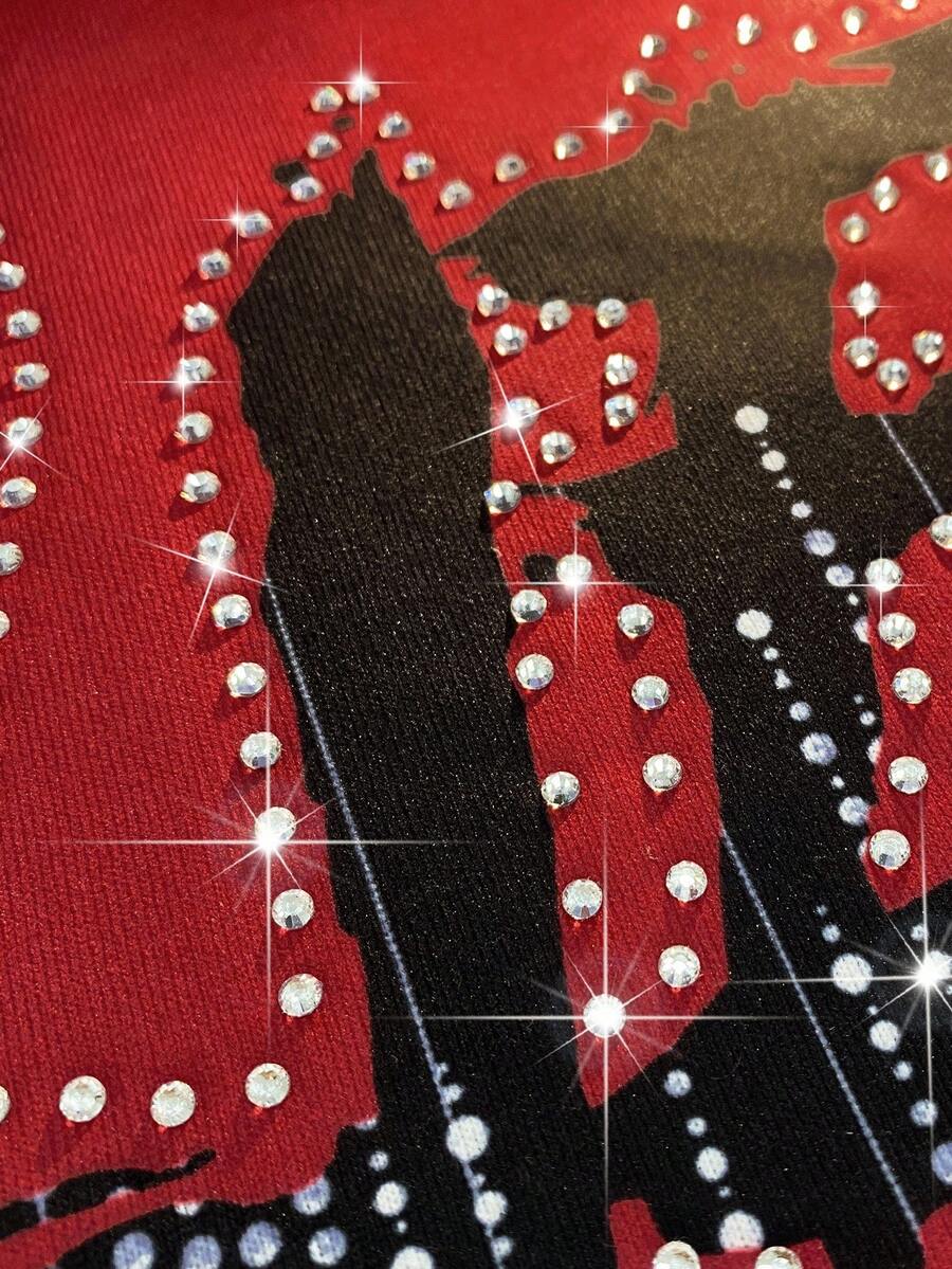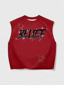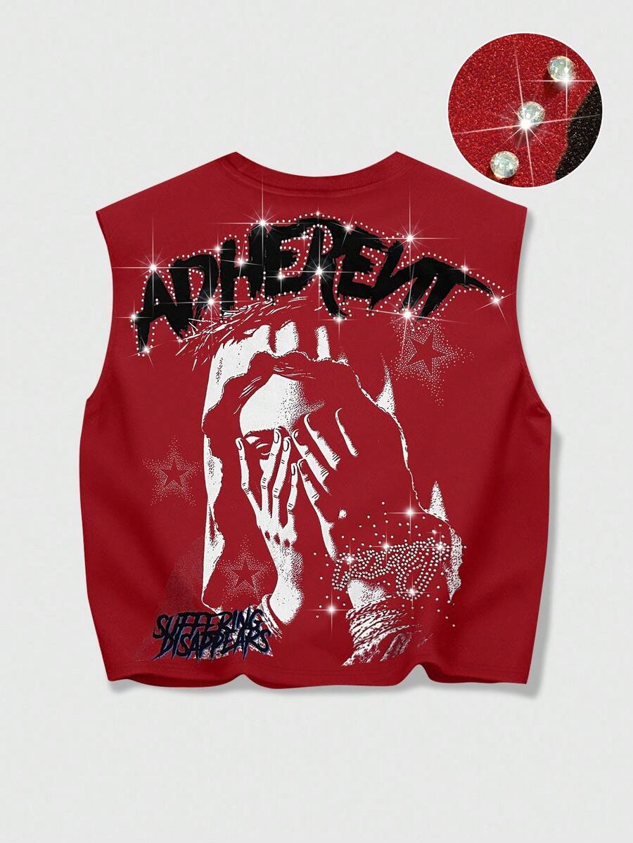 Grunge Punk Camiseta de tirantes holgada de moda casual para hombres con estampado de Virgen María y letras, con adornos de rhinestones, para el verano