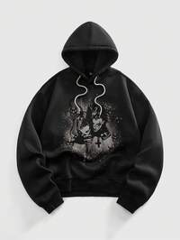 Grunge Punk Sudadera con capucha holgada y gráfica casual para hombre, para otoño/invierno