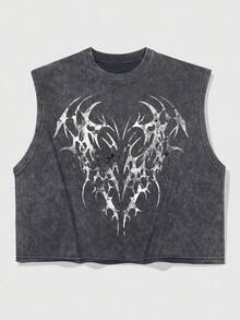 Street Life Chaleco sin mangas de cuello redondo con estampado gráfico casual y corte holgado para hombre, de verano