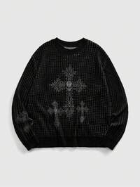 Suéter de manga larga con gráfico de bloque de color, estilo callejero, con hombros caídos y rasgado, de rayas para hombre, para vacaciones, amigos, suéter de punto de hombre, suéter de punto a rayas, suéter a rayas desgastado, suéter de cuello redondo a rayas para hombre, otoño e invierno