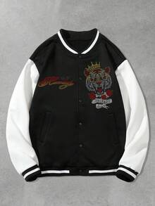 Street Life Chaqueta de béisbol con bloques de color para hombres, abrigo casual con botones delanteros y gráfico de tigre