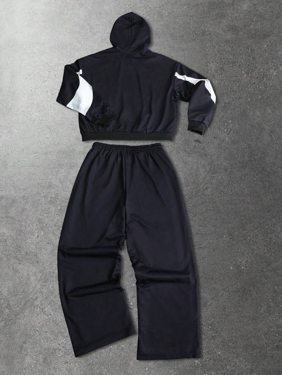 Street Life Conjunto de sudadera con capucha y pantalón de chándal con parches de colores contrastantes para hombre
