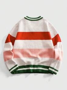 Street Life Suéter de punto con cuello redondo y estampado de letras de colores, moda callejera para hombres