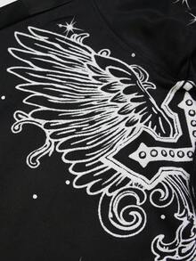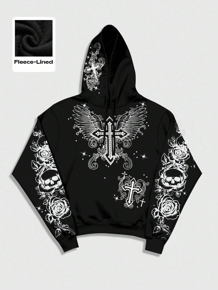Street Life Sudadera con capucha de manga larga con estampado de cruz y alas para hombre, estilo punk callejero, otoño e invierno