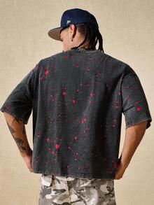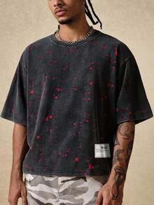 Street Life Camiseta corta de algodón con estampado de puntos rojos de dos colores para hombre