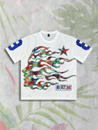 Camiseta de manga corta de ajuste suelto con estampado de retrato de diamante de carácter de la vida urbana, para rave