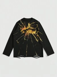 Goth Camiseta suelta de hombros caídos y estampada para hombres
