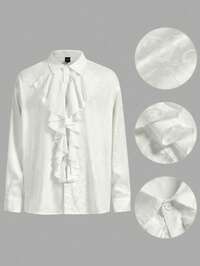 Street Life Camisa de manga larga minimalista y casual de unicolor con ribete de volantes para hombres
