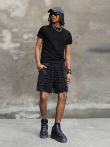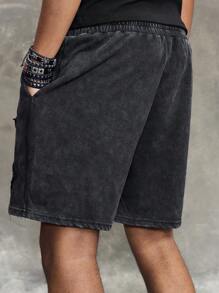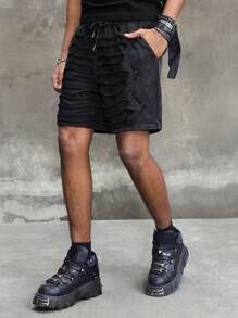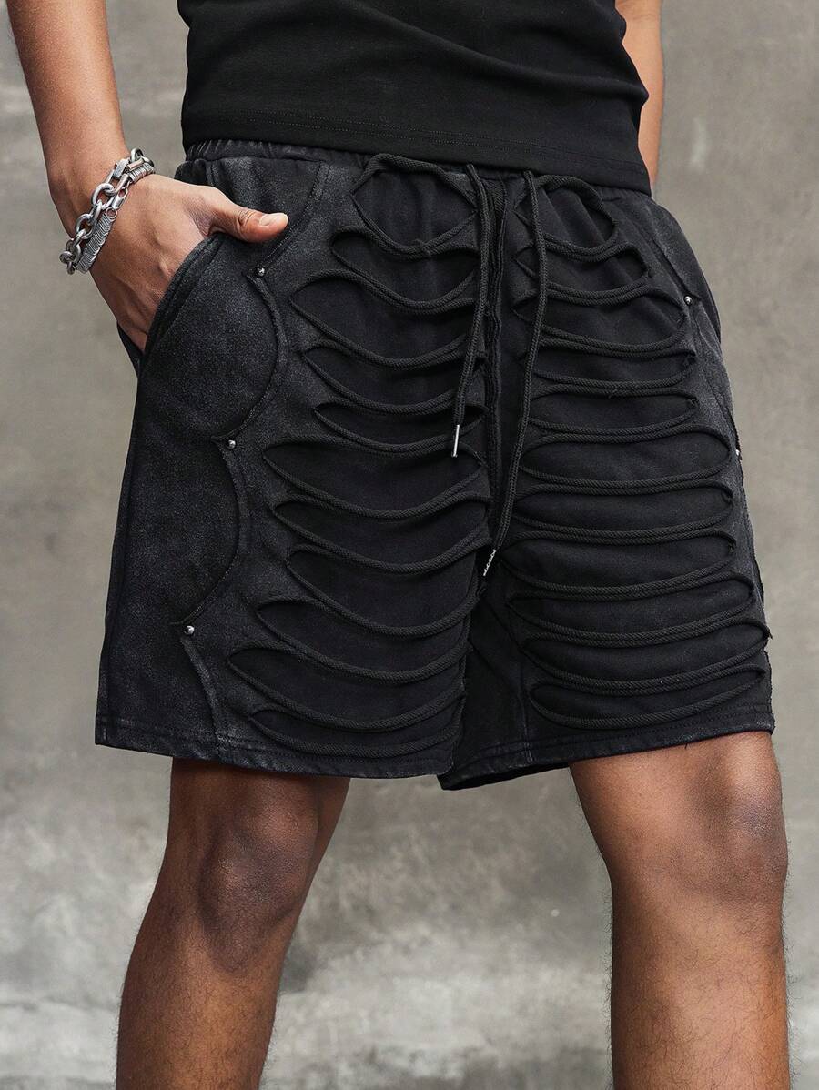 Pantalones cortos casuales sólidos con cintura con cordón y rotos para hombres