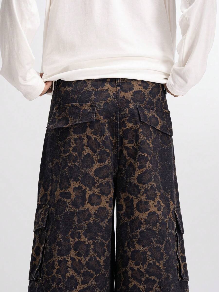 Street Life Pantalones cortos de mezclilla con estampado de leopardo para hombre, uso casual para primavera y verano