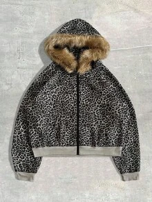 Street Life Sudadera con capucha de manga larga con estampado de leopardo para hombre