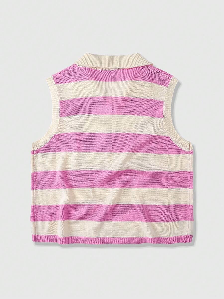 Street Life Chaleco de punto con patrón de rayas y bloqueo de color con bordado de letras para hombre