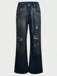 Jeans De Pierna Ancha Rasgados Para Hombre De Ajuste Holgado