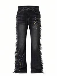 Street Life Jeans acampanados con bolsillo bordado con cruz y dobladillo deshilachado para hombres