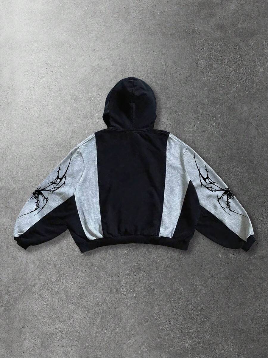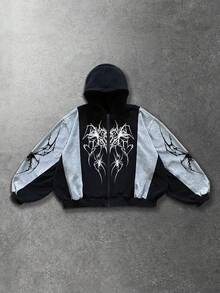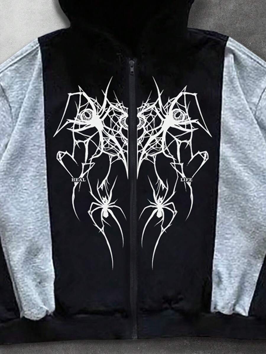 Street Life Sudadera con capucha de ajuste holgado con estampado de araña de color contrastante y parches para hombre
