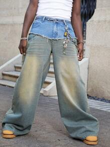 Street Life Jeans holgados y sueltos con parches y contraste de colores lavados para hombres