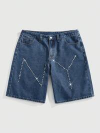ROMWE Avant Pantalones cortos vaqueros (jorts) de hombre con decoración de strass, de moda de vanguardia para el verano