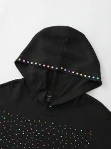 Street Life Conjunto de chándal casual de sudadera con capucha decorada con rhinestones y pantalón de chándal a rayas con cordón en la cintura para hombre, ropa de otoño
