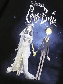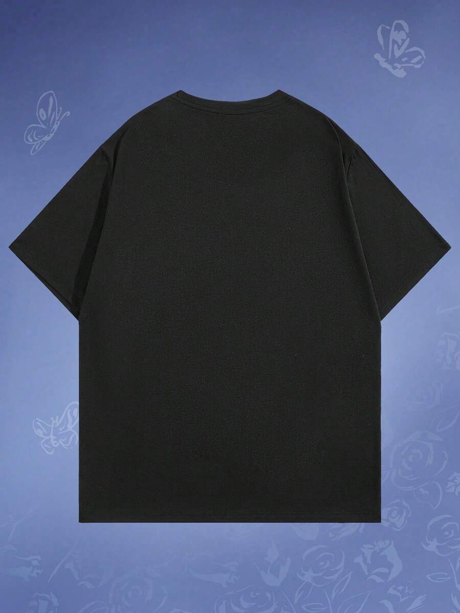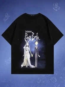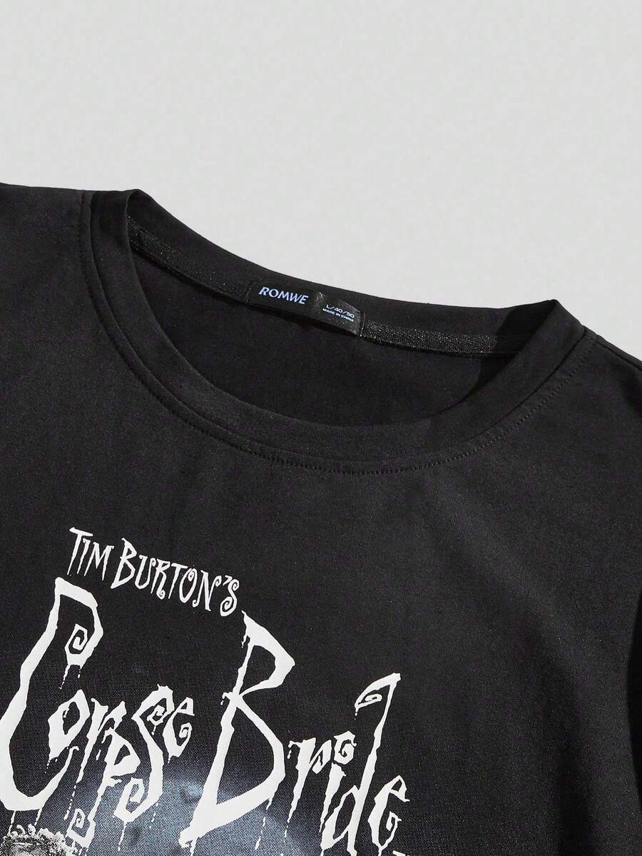 Corpse Bride | ROMWE Camiseta De Hombre Con Mangas Cortas Y Diseño De Letra Y Personajes Impresos