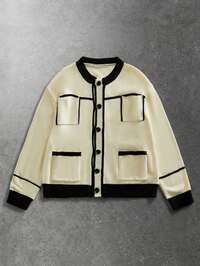 Cárdigan de punto de manga larga de un solo botonadura con bolsillos múltiples de color contrastante para hombres, otoño/invierno