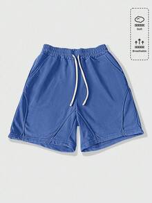 Street Life Pantalones cortos casuales sueltos con bolsillo y cordón en la cintura de unicolor para hombres