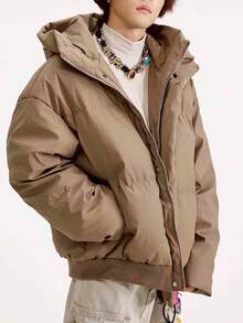 Street Life Chaqueta casual con capucha de cremallera de manga larga y unicolor para hombre en invierno