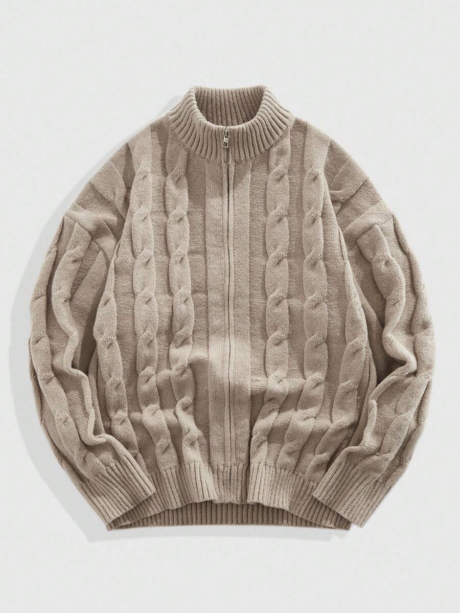 Street Life Suéter cardigan de punto de cable de manga larga con cuello alto y cremallera, de unicolor, informal, para hombre, otoño/invierno
