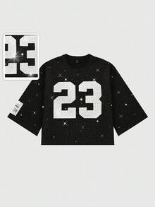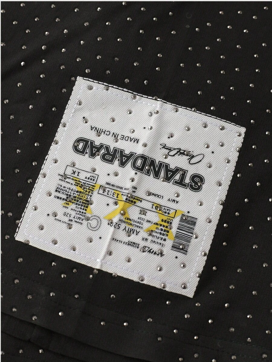 Street Life Camiseta de manga larga con bordado de diamantes brillantes para hombre