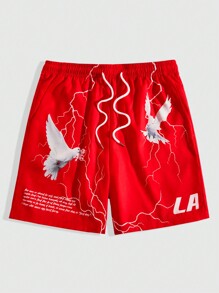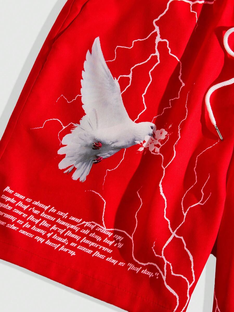 Street Life Pantalones cortos con estampado de paloma y letras para estilo callejero para uso diario en primavera y verano, escuela, para hombres
