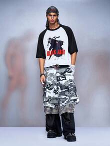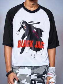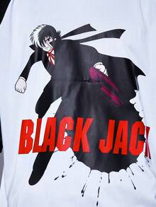 Black Jack X ROMWE Camiseta con estampado de bloques de color de la colaboración Black Jack para hombres