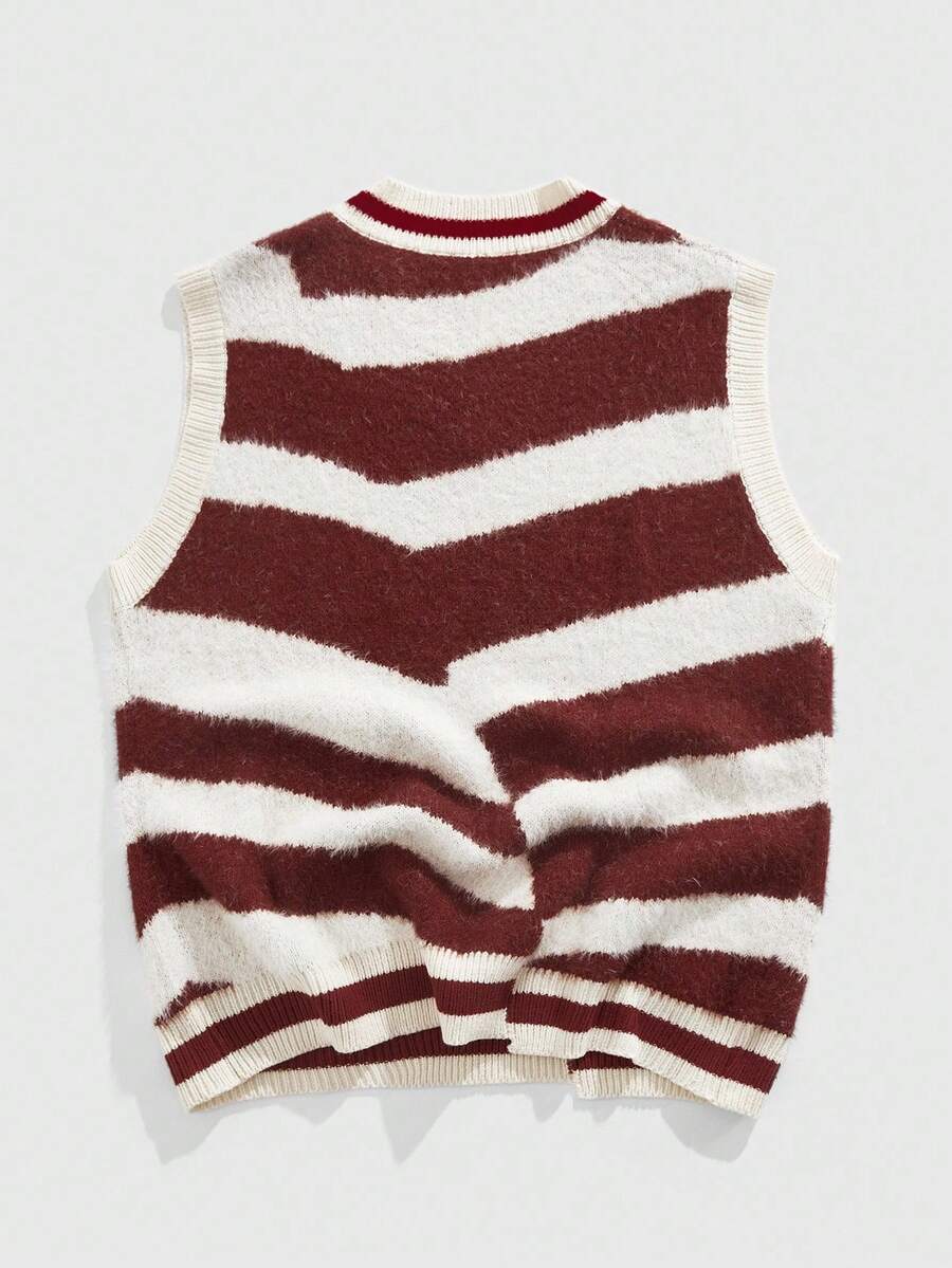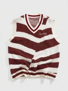 Street Life Chaleco de punto suave con cuello en V y contraste de color, estilo universitario retro, para otoño e invierno