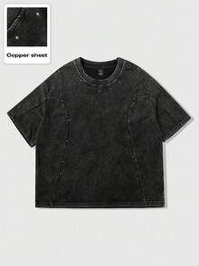 Street Life Camiseta de manga corta con lavado vintage, decoración de remaches y copos de nieve, estilo de los años 2000 para hombres