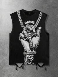 Street Life Camiseta de tirantes con estampado de boca lavada y desgastada para hombre, para el verano, la escuela, estilo de los 2000