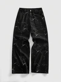Street Life Jeans casuales de pierna ancha y corte holgado con patrón de cruz para hombres