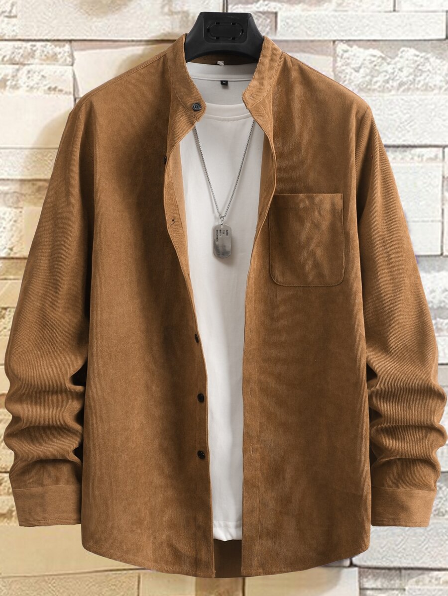 Hombres 1 pieza Camisa con parche con bolsillo con botón