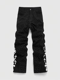 Street Life Jeans casuales con bolsillo con patrón de cruz y rhinestones para hombres