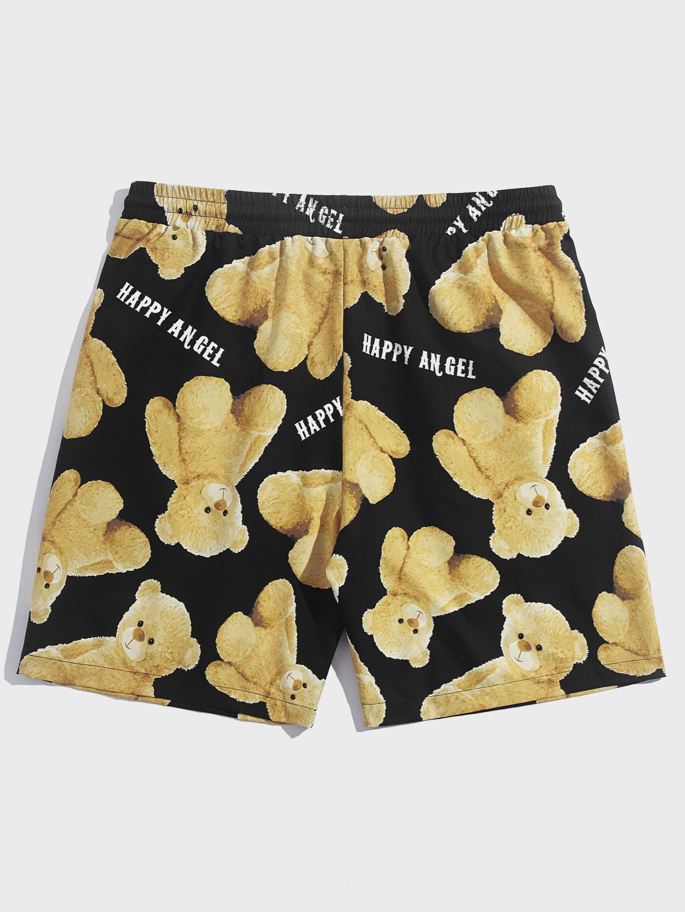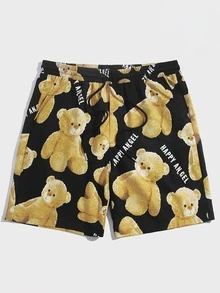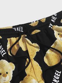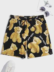 Hombres Shorts con estampado de oso y letra de cintura con cordón