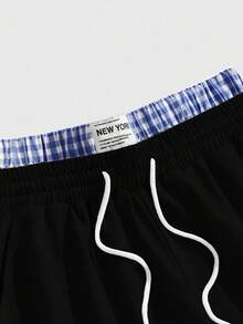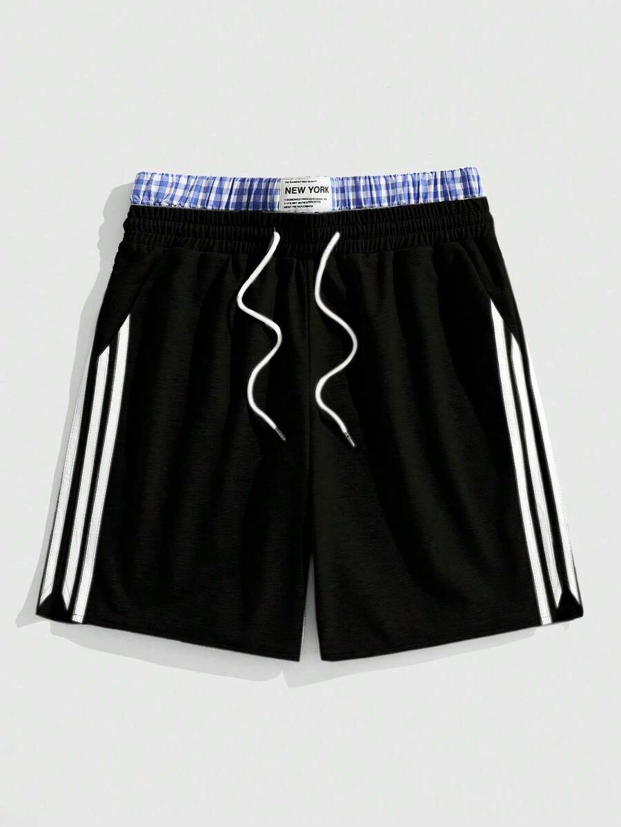 Street Life Pantalones cortos deportivos casuales para hombre con contraste de cuadros escoceses, cintura con cordón y rayas laterales
