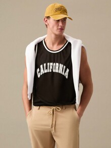 Camiseta de baloncesto con gráfico de letra y ribete de contraste de malla para hombre, de vuelta a la escuela