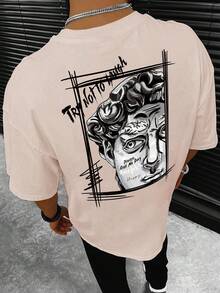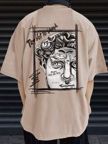 Camiseta Holgada Para Hombres Con Impresión Gráfica De Letras Y Figura