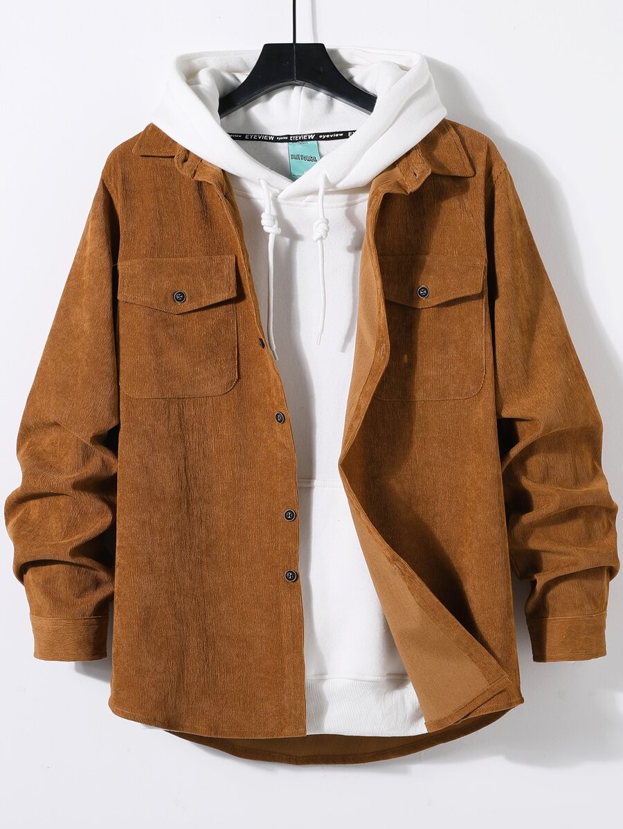 Hombres Camisa con bolsillo con solapa con botón de pana sin camiseta